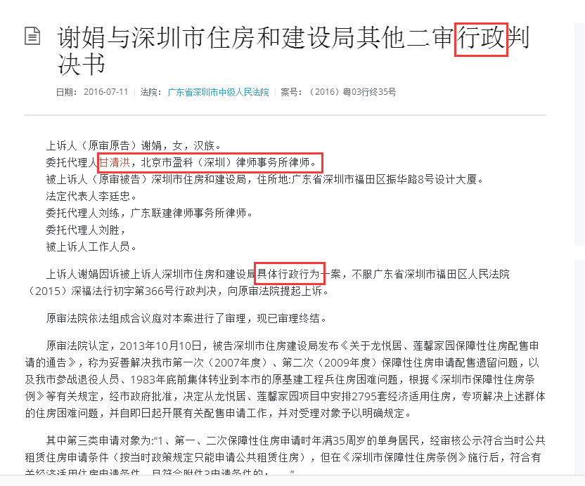 甘律师代理谢某某诉具体行政行为案